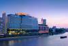 The main lobby features a large external and internal copper clad wall that runs from outside the building leading guests to the entrance. The renovated building offers guests several exceptional dining experiences; a riverside bar and brasserie with outside seating and a new rooftop lounge and terrace that boasts a spectacular panorama of the river and views to the City and beyond.