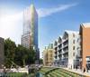 Strategically located at the northern end of the development, the residential tower signals the regeneration of Wandsworth and the rediscovery of the River Wandle. Its dynamic triangular form sits purposefully on the ground and emerges with varying setback terraces to reveal a more slender version of itself.